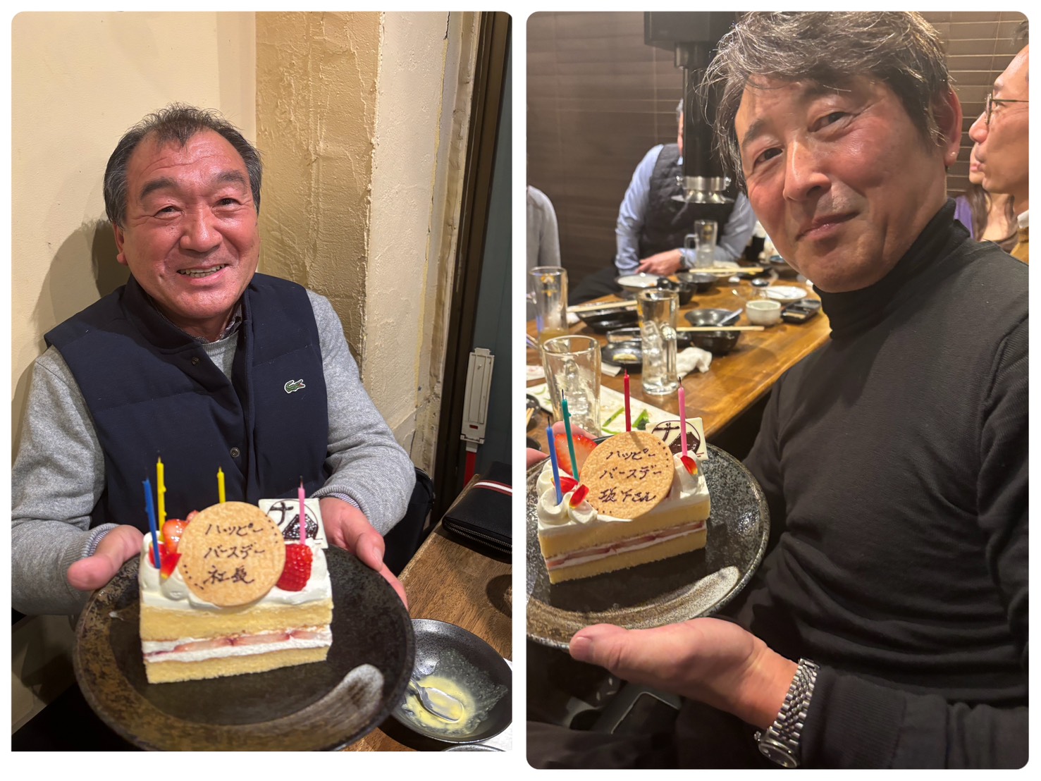 最後はサプライズで藤田社長と、坂下さんのお誕生日をお祝いしました。